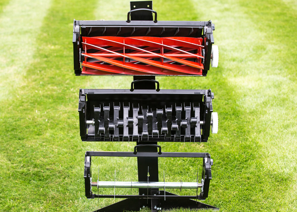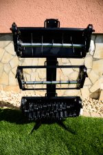 Engineered for versatility, the stand can hold up to three different cartridges from the Allett range, including the QC, RC, and UC types. This capacity allows you to store your scarifier, aerator, and cutting cylinder all in one convenient location. The smart design offers two placement options: it can be used as a stable, free-standing unit on the floor or securely mounted to a wall, making it an excellent space-saving solution for smaller storage areas.