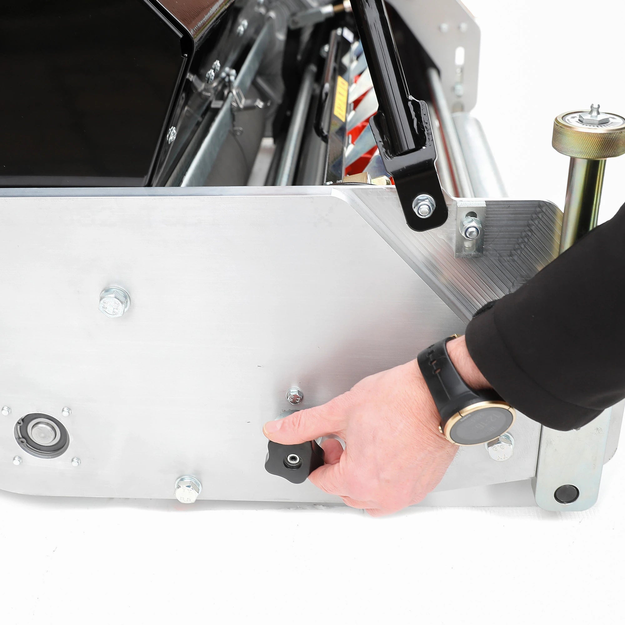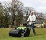 With its wide 27-inch (686mm) cutting width, the C27 Evolution is ideal for larger pitches at football clubs, rugby grounds, and baseball fields. The height-of-cut is easily adjustable from 8mm to 55mm via a simple click system, where one click equals a 0.18mm adjustment, requiring no tools. This precision, combined with a grooved front roller for even weight distribution and a rubberised rear roller with steel differential gears, produces the famous, crisp Allett stripes without leaving wheel marks. The mower also features an optional built-in backlapping kit, allowing for easy on-site blade maintenance to keep the cylinder sharp.
