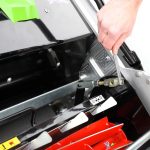 The mower comes with three 82V 8Ah Cramer batteries, providing a total run time of up to 2 hours and 45 minutes. Each individual battery takes just 90 minutes to fully recharge, and the mower can operate on one, two, or three batteries for maximum flexibility.