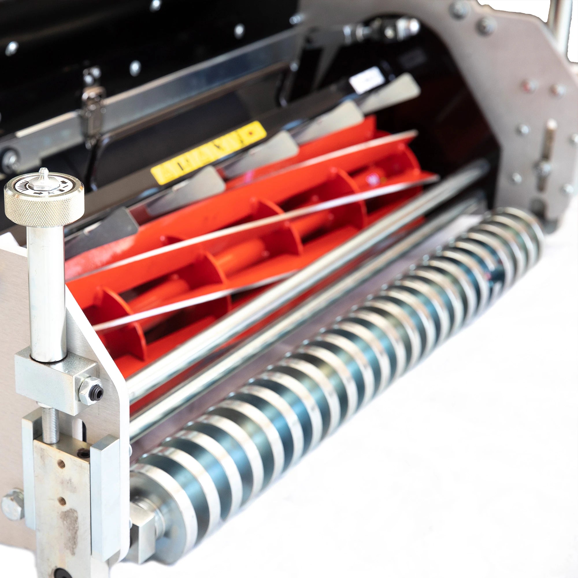 • Rubberised rear roller and grooved front roller for perfect stripes