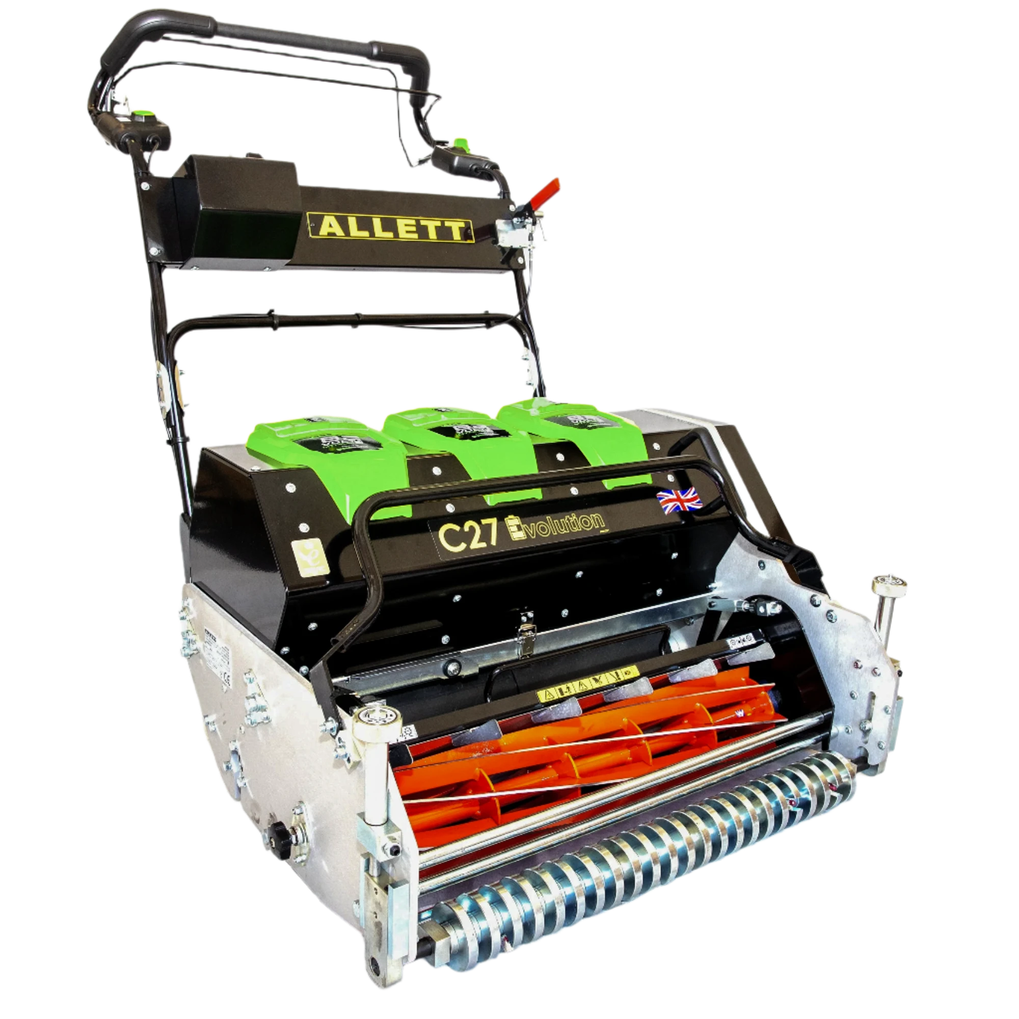 The Allett C27 Evolution stands as Allett’s flagship electric professional cylinder mower, engineered to provide unparalleled precision, versatility, and eco-friendly performance for comprehensive turf care. It is specifically designed for grounds professionals, stadium crews, and discerning gardeners with large prestige lawns. At its heart are advanced 82V 8Ah lithium-ion batteries, merging Allett’s renowned cut quality with the latest in battery technology.