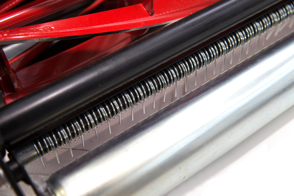 At the heart of the Kensington 17 is a six-bladed precision cutting cylinder, delivering 79 cuts per metre for a crisp, scissor-like action that promotes a healthier, denser lawn. This clean cut avoids tearing or bruising the grass, which is crucial for achieving a formal, high-quality finish. A spring tine comb, positioned just in front of the cylinder, lifts lateral grasses and debris to ensure every blade is cut evenly. The mower’s ability to produce sharp, classic stripes is guaranteed by its zinc-plated steel front roller and a heavy, double-section steel rear roller with a differential, which allows for smooth turns without scuffing the turf.