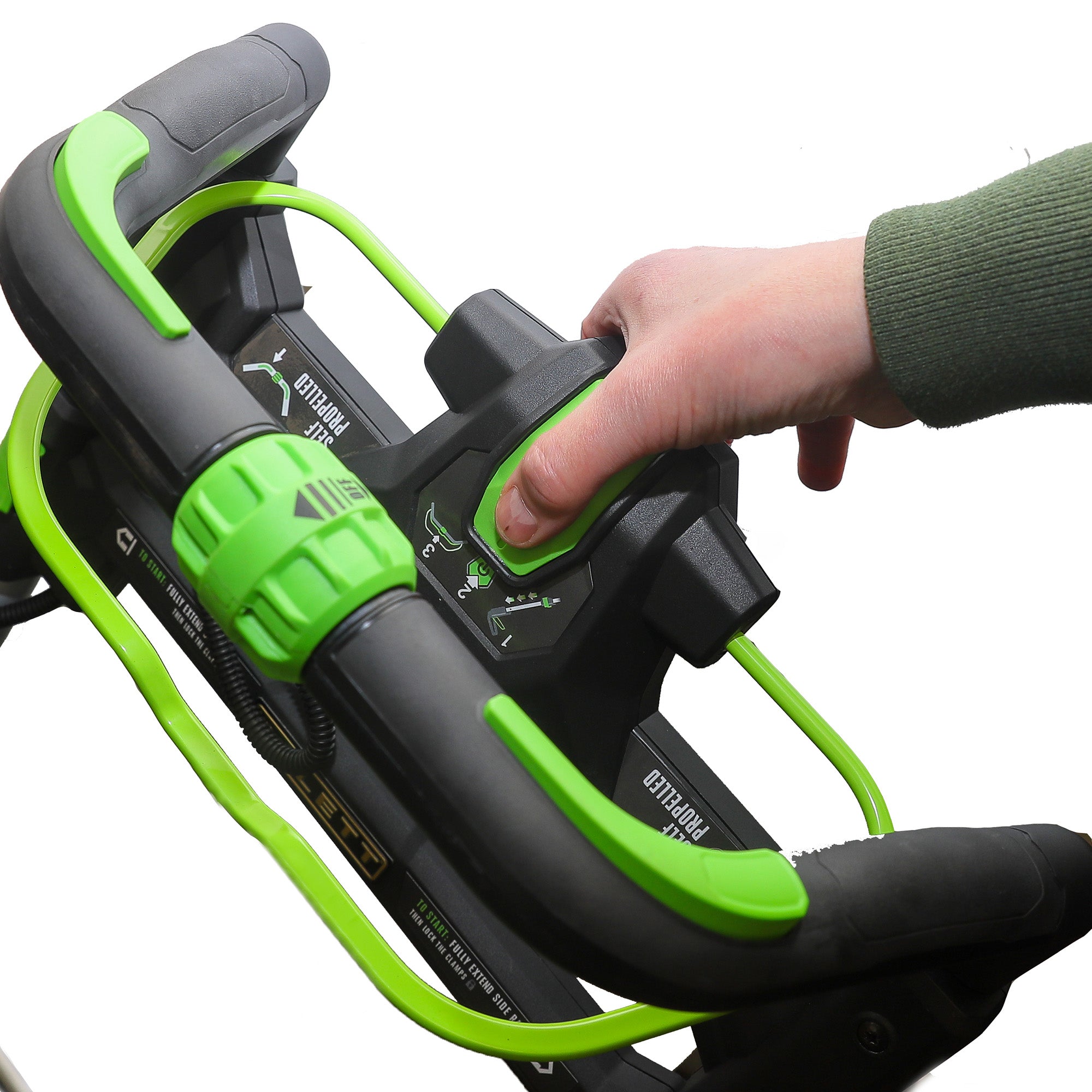 The mower is supplied with a 10Ah EGO 56V battery, which provides approximately 60 minutes of mowing time on a full charge. The included rapid charger can fully recharge the battery in around 40 minutes, minimising downtime. The system is also compatible with other EGO batteries (5Ah, 7.5Ah, 12Ah) if you have them already.