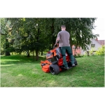 - Ergonomic stand-on design with a foldable, spring-mounted operator platform for versatility and comfort.