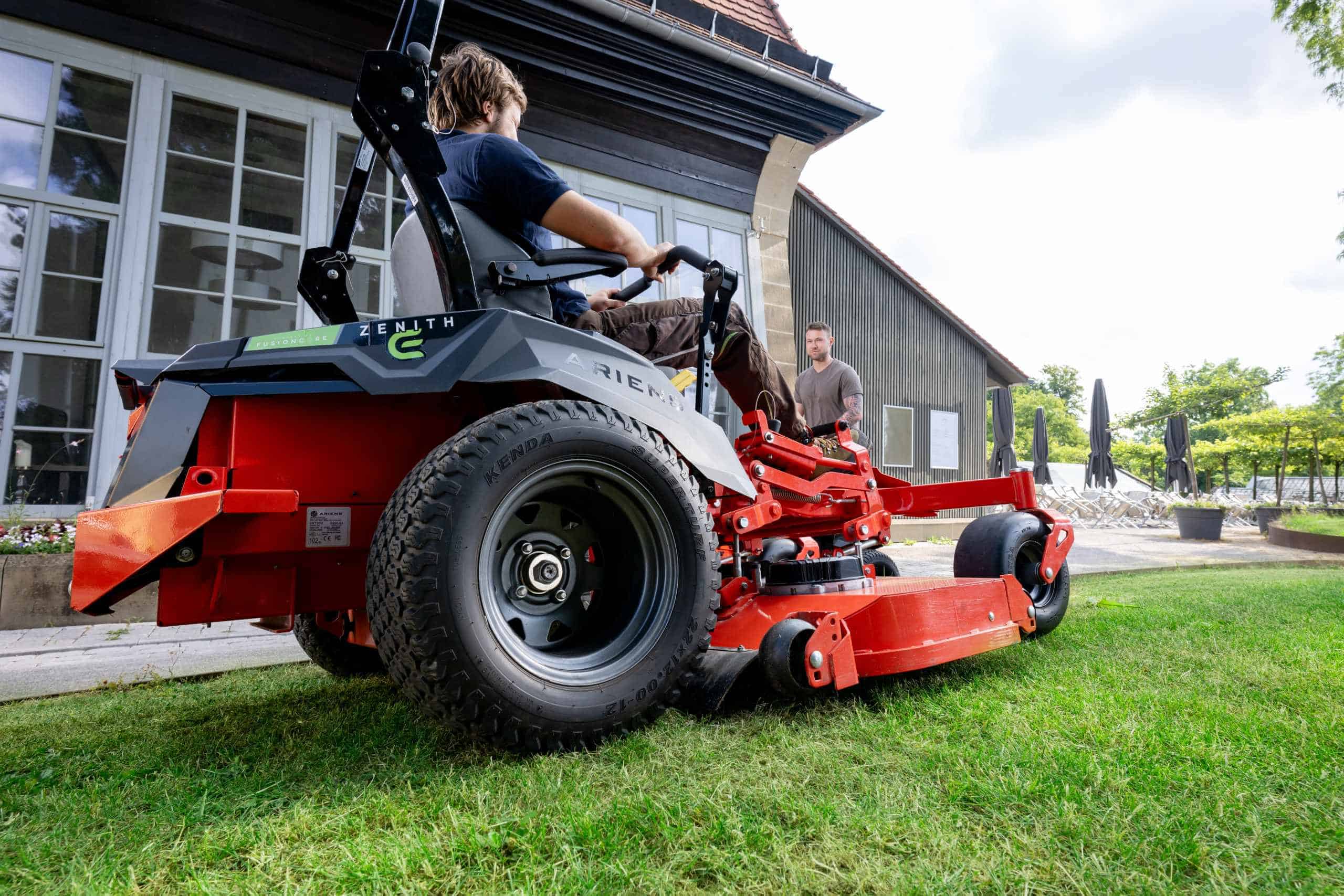 Ariens sets a new standard with the ZENITH E 60R, the first professional electric zero-turn mower featuring an interchangeable battery system. While many mowers use batteries, few achieve the performance, durability, and reliability of a proven petrol equivalent. The ZENITH E 60R, with its advanced FusionCore™ system, meets this demand head-on, making it ideal for professional service providers, municipalities, and owners of large estates who require all-day performance.