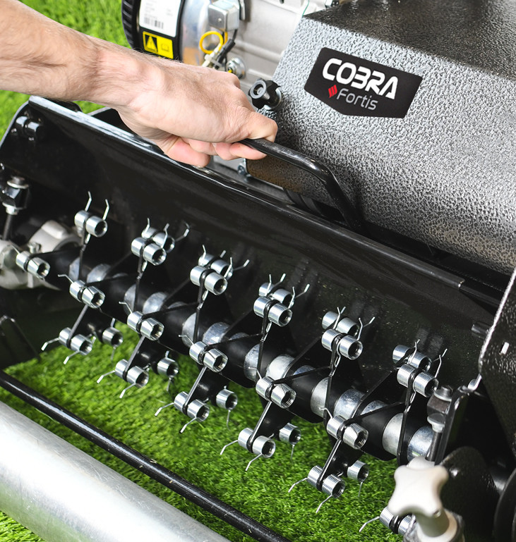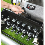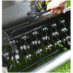 The Fortis 25E is more than just a mower. It is designed to be part of a complete lawn care system with an optional interchangeable cassette system available separately. This allows for tasks like scarifying, aerating, and more, all with one machine. The heavy-duty drive system provides reliable self-propelled motion, and the large 90-litre grass box ensures efficient collection with fewer interruptions. Its substantial 102.4kg weight contributes to its stability and the quality of the striped finish.