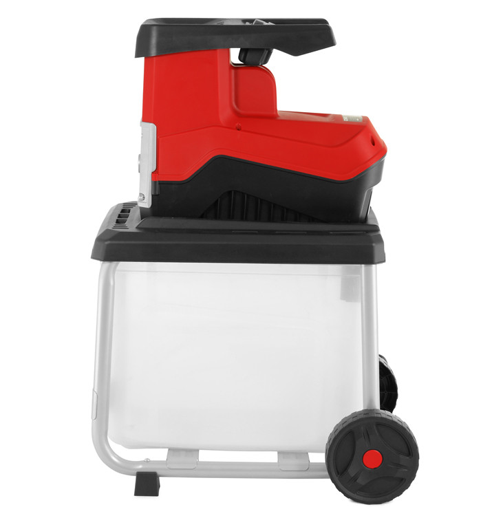 Unlike louder impact shredders that use fast-spinning blades, the QS2500 uses a drum cutting system. A rotating drum gear pulls branches in and crushes them against a solid metal plate. This method is significantly quieter and produces chippings that are excellent for composting.
