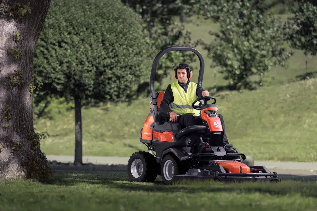 The Husqvarna P 524X EFI is a high-capacity, front-mounted petrol ride-on mower specifically engineered for demanding commercial use. It is the ideal solution for facility management companies, sports clubs, and professional contractors who require a powerful and highly manoeuvrable machine for maintaining complex grounds throughout the year. Its compact design allows it to navigate tight spaces, while its powerful engine and drivetrain handle large areas with ease.