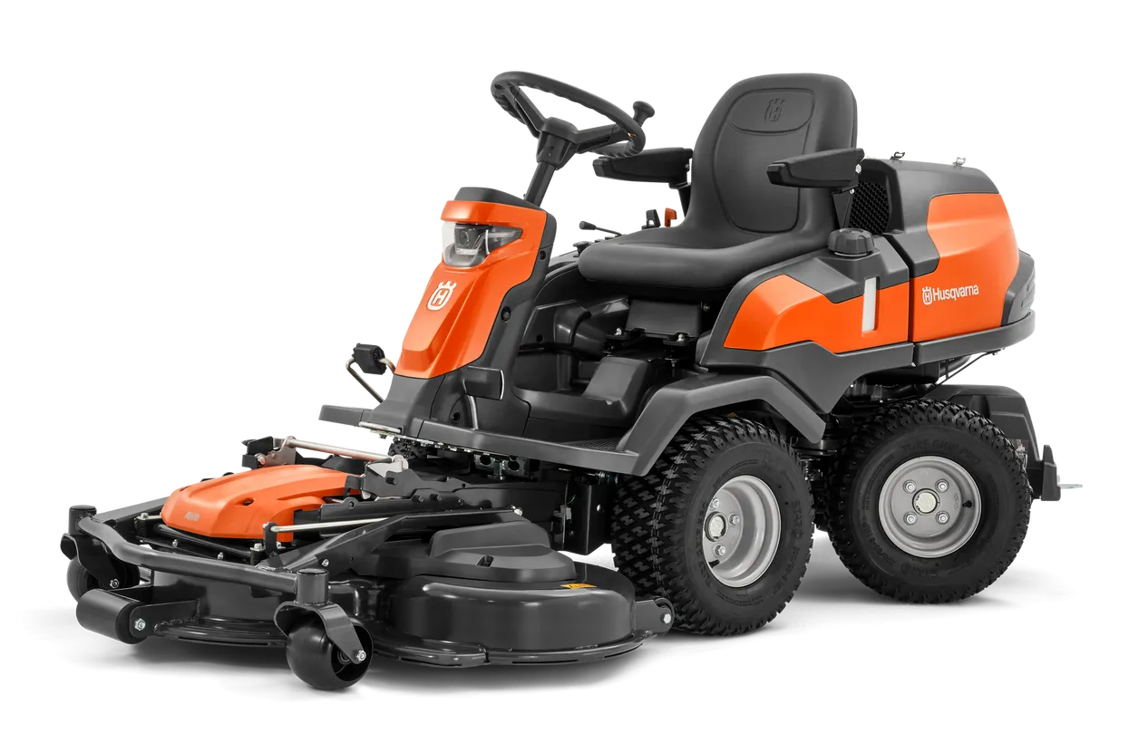 The Husqvarna R 420TsX AWD is a high-performance front mower designed for demanding use in estates, sports facilities, and commercial property management. At its core is a powerful, commercial-grade Kawasaki FS Series V-Twin engine, delivering high torque and reliable power. This is paired with a robust All-Wheel-Drive (AWD) system that ensures outstanding traction on uneven, wet, and slippery areas, as well as slopes, providing safety and stability year-round.