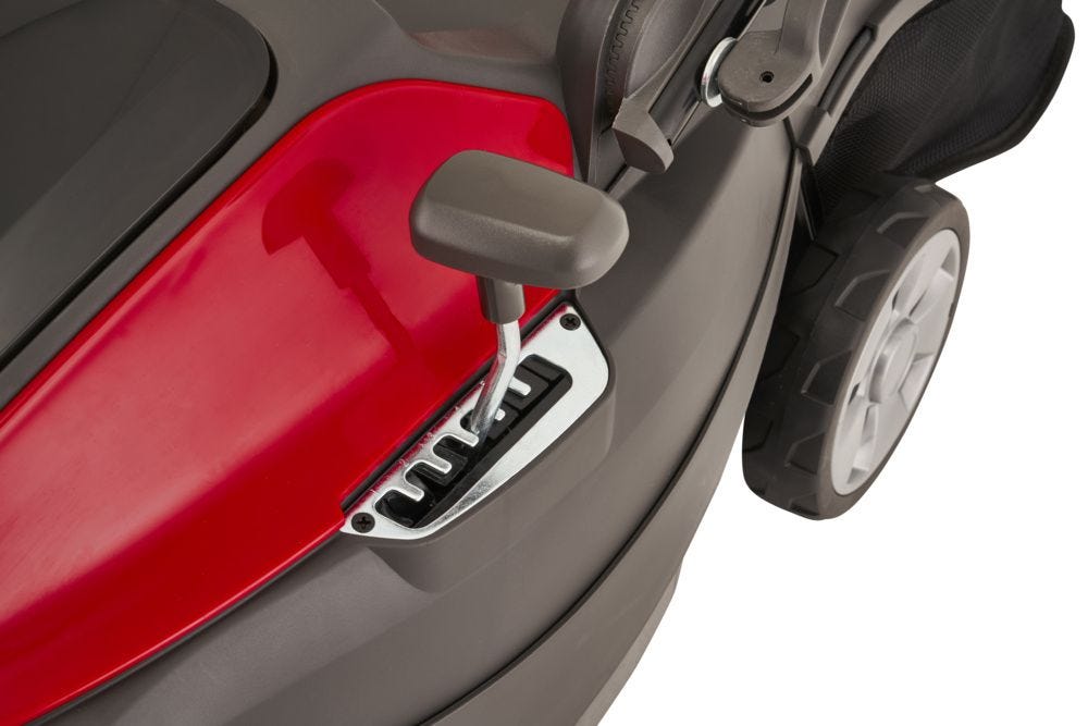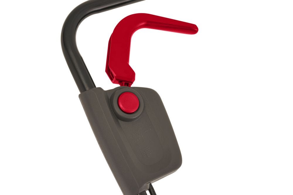 This mower is packed with features to make lawn care easier. The self-propelled function, activated by a simple lever, moves the mower forward at a fixed speed of 4.1 Km/h, taking the strain out of mowing. A centralised lever allows for quick adjustment between five cutting heights, ranging from 20mm to 70mm, to suit the season and grass condition. The spacious 55-litre hybrid grass collector reduces the need for frequent emptying and features a handy ‘bag full’ indicator to prevent overfilling. For operator comfort, the ergonomic handlebar is both adjustable and foldable for compact storage.