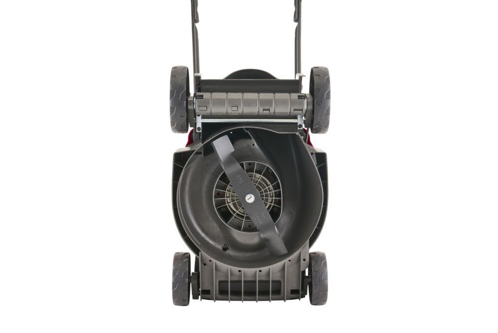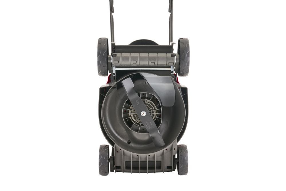 The cutting height is adjusted using a single, centralised lever, which is a convenient feature that changes the height of all four wheels simultaneously. There are 6 different height positions available, ranging from 25mm to 75mm.