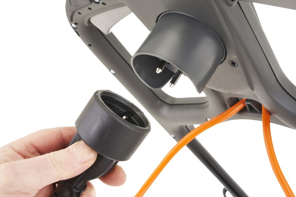 The mower comes almost fully assembled. Included in the box is the main mower unit, a 35-litre textile grass collector, a 15-metre power cable, and a mulching plug for returning fine clippings to the lawn.