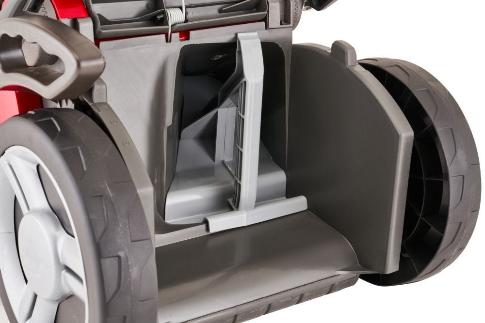 Designed for convenience, the mower features a centralised lever to easily adjust the cutting height through six different positions, from 25mm to 75mm, ensuring the perfect cut for any lawn condition. The lightweight polypropylene deck makes the machine easy to manoeuvre. For storage, the flat handlebar with comfort switch and soft grip can be easily folded down, making the PRINCESS 38 compact and simple to store in a shed or garage. This durable and practical electric mower from Mountfield is an excellent choice for gardeners seeking reliability and a high-quality finish.