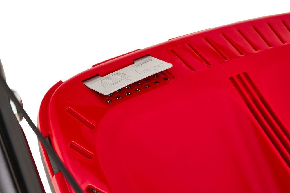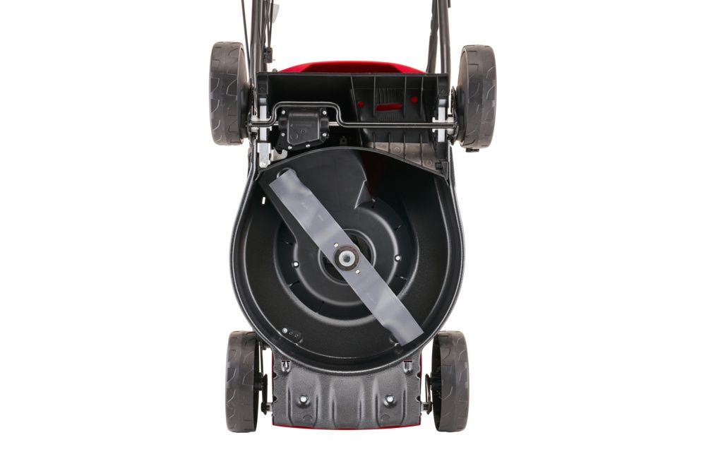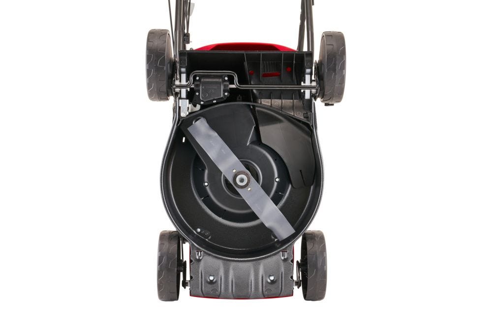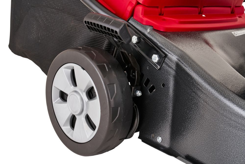 - Self-propelled rear-wheel drive for effortless mowing on slopes and uneven ground