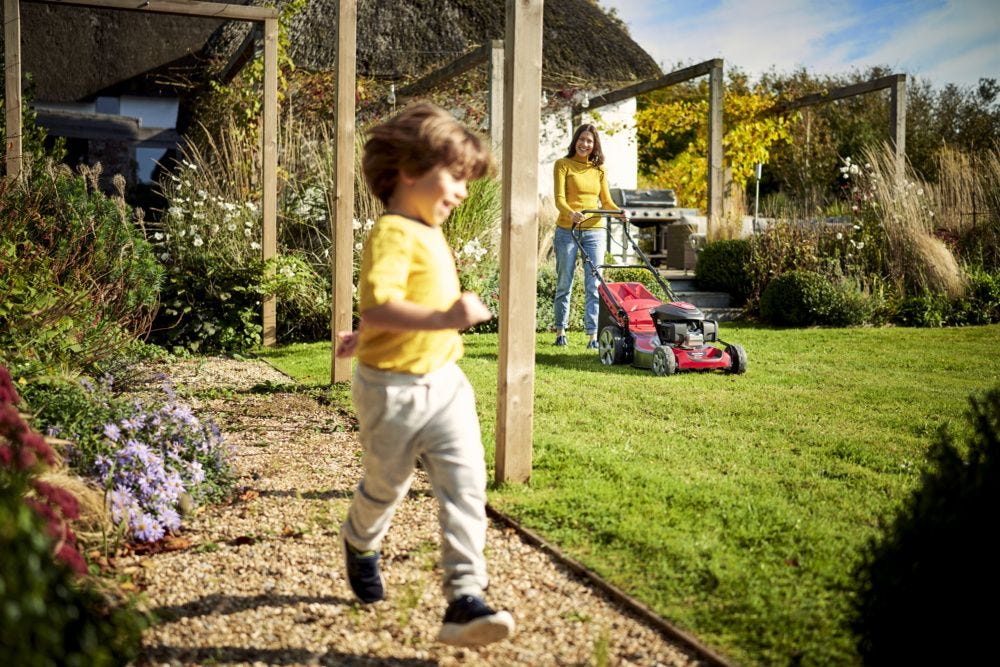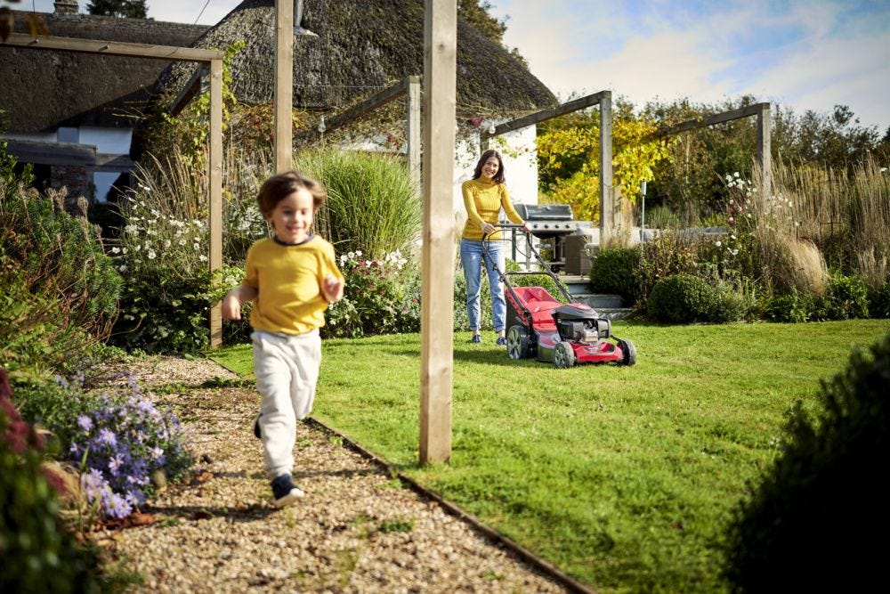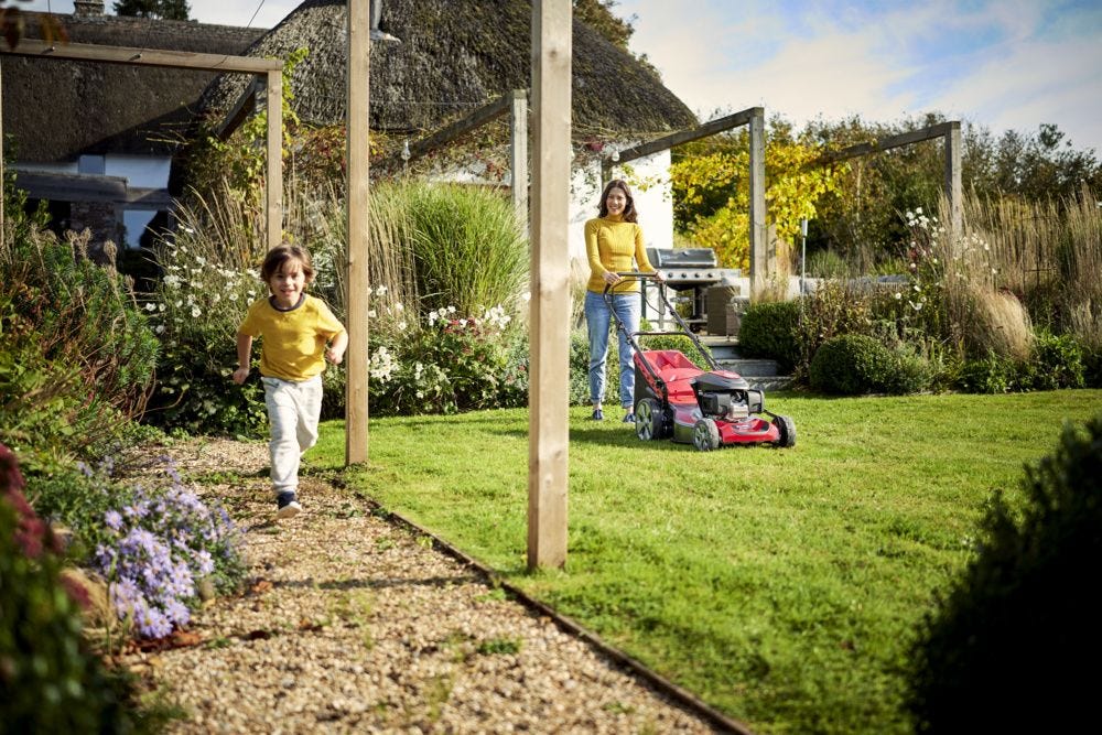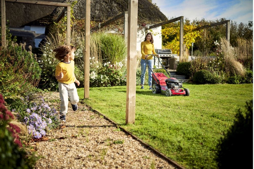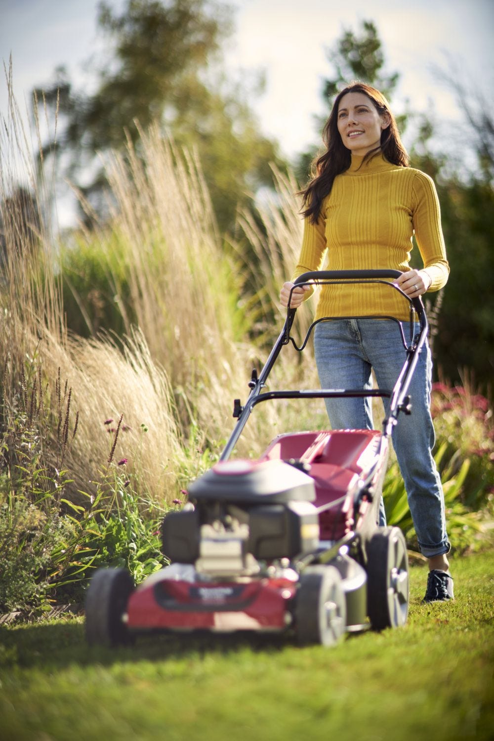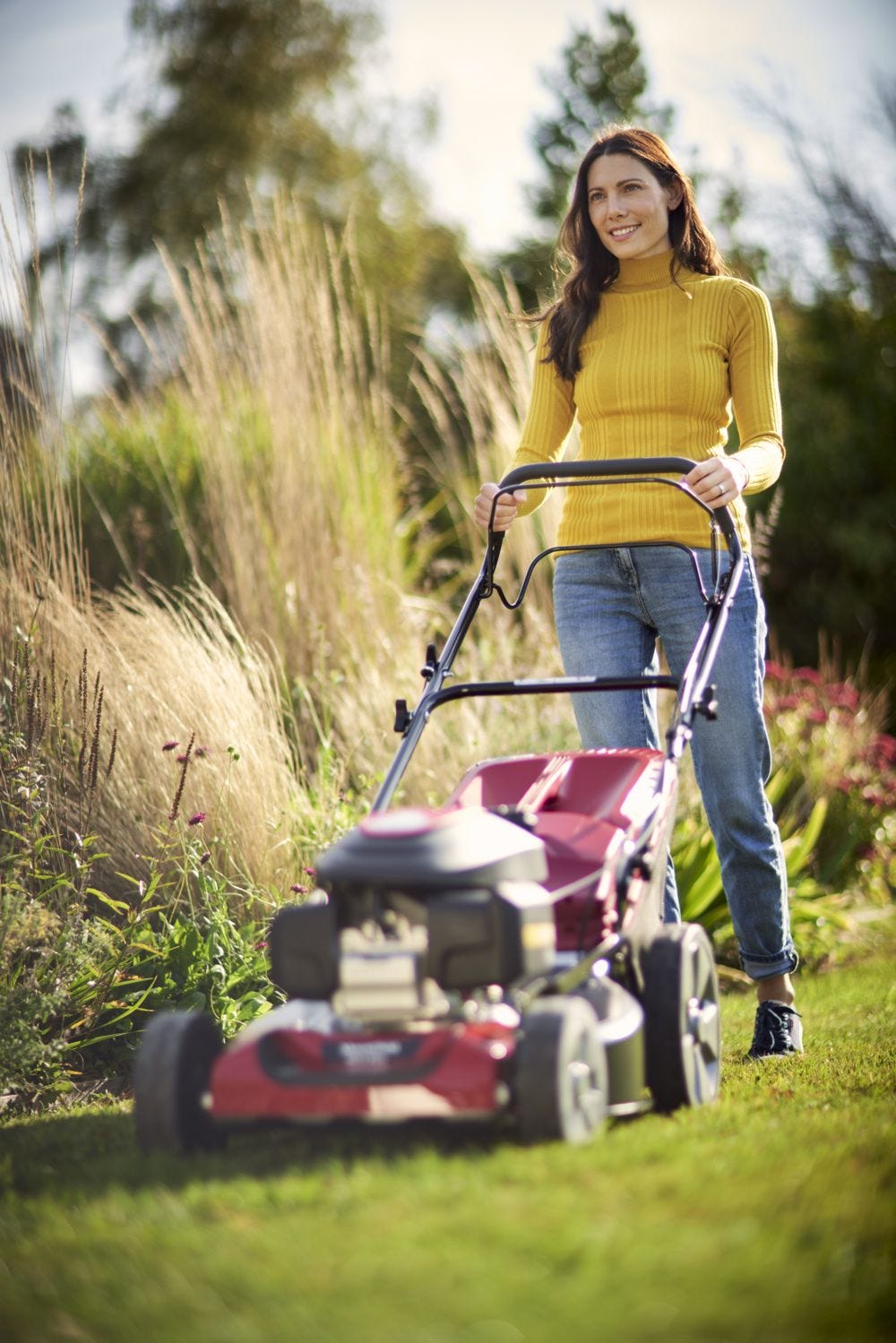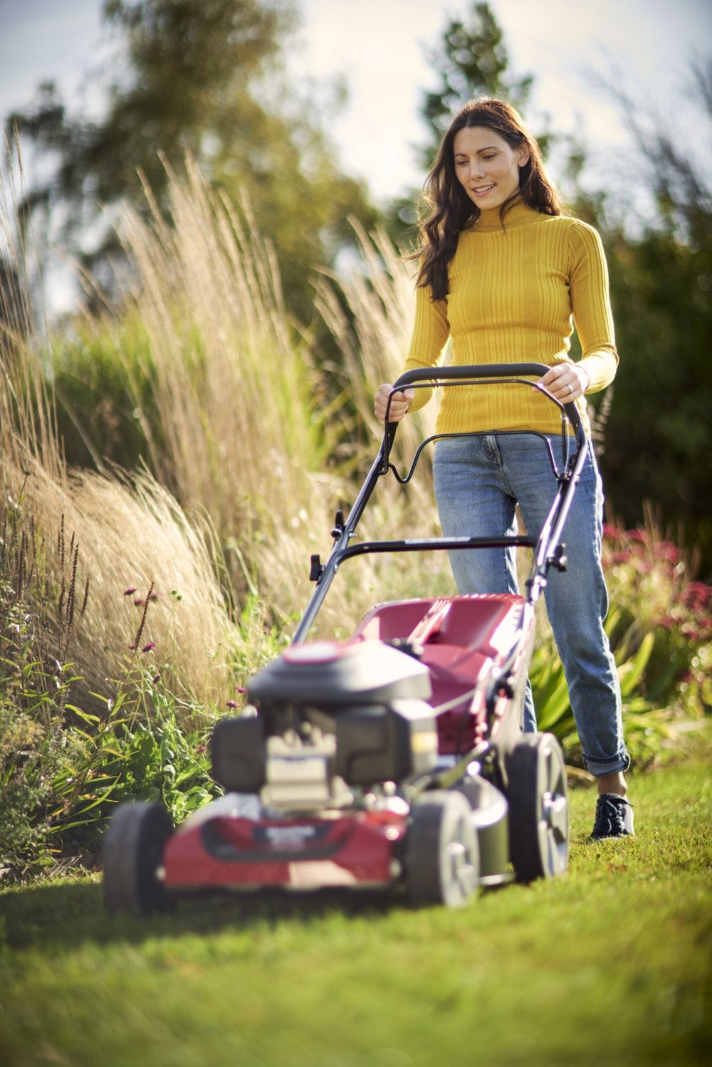 - Self-propelled rear-wheel drive makes mowing effortless, even on sloped ground.