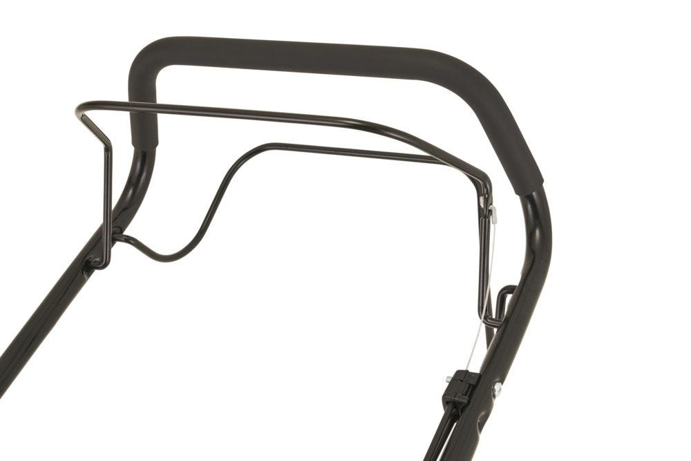 The self-propelled, rear-wheel drive system powers the mower forward at a comfortable 3.7 Km/h, removing the effort of pushing, which is especially useful on inclines or across larger areas. The large 280mm rear wheels provide excellent traction and smooth handling over bumpy terrain. The ergonomic handlebar features a soft grip for comfort, and camlock adjusters make it quick and easy to fold the handles for compact storage. An integrated front bumper adds to the mower’s durability.