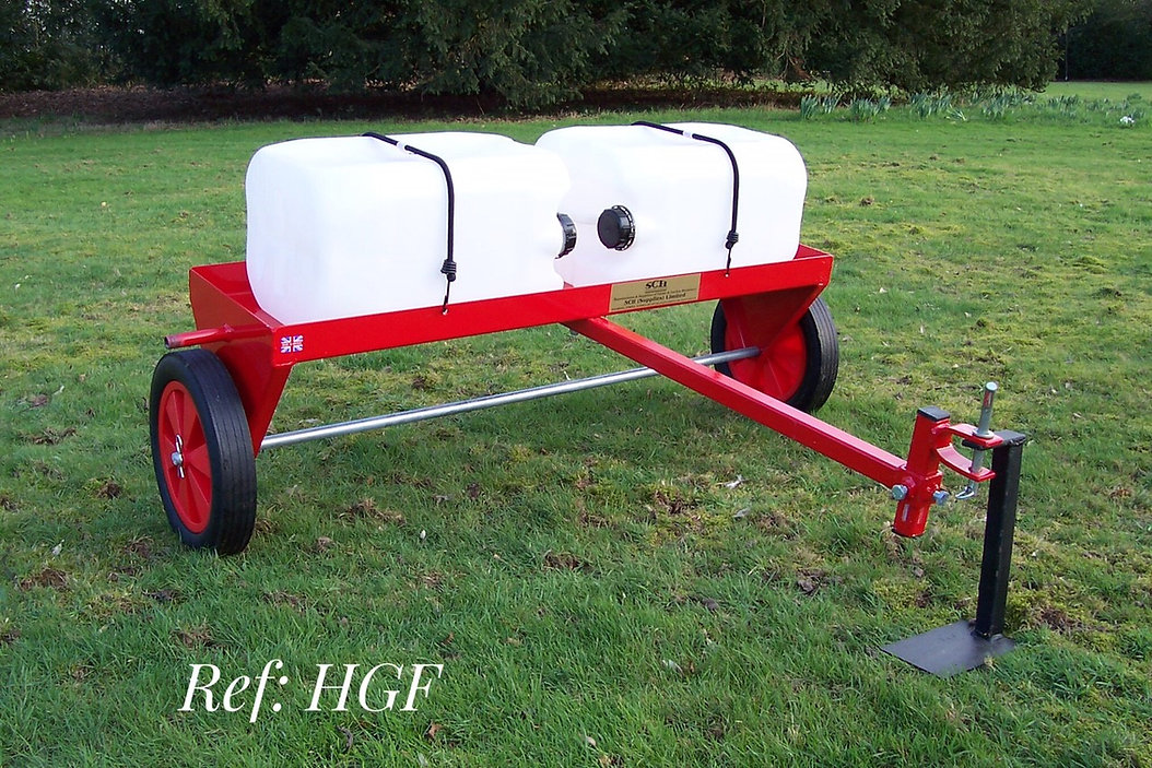 The frame features a height-adjustable tow bar, ensuring compatibility with a wide range of towing vehicles. It is equipped with two robust transport wheels for ease of mobility and arrives fully assembled for immediate use.
