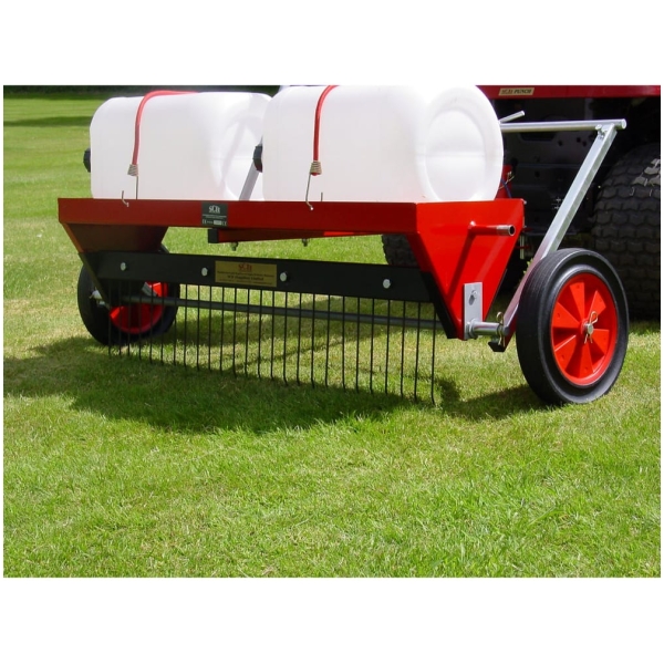 Theย Heavy Duty Slitter Attachment is an ideal tool to improve drainage and root growth to grassed areas, especially in late spring and wet summers. Well drained grassed areas will help towards the prevention of moss. The two 25 litre ballast containers supplied with the carrying frame, when full, will provide extra weight to drive in the slitters. The 10 slitters eachย have 8 tines as well as springs fitted between, to keep correct spacing between stars.