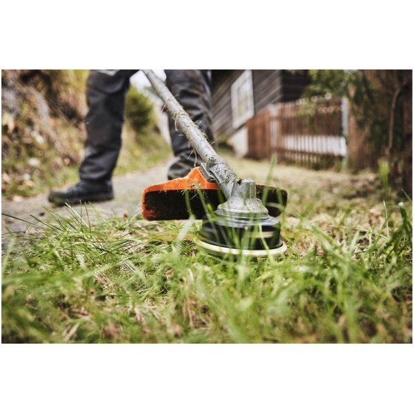 STIHL has designed the KM 56 RC-E with the user in mind. The loop handle, combined with a protective barrier bar, provides excellent control and safety, particularly when working in confined areas. The quick-release coupling is a standout feature, enabling the user to switch between KombiTools swiftly and without the need for any tools. For transport and storage, the shaft detaches easily, making it compact enough to fit in most cars. Additionally, the convenient stop button automatically returns to the start position, ensuring the engine is always ready for a quick restart after a short break.
