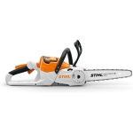 Lightweight cordless chainsaw for cutting firewood and garden maintenance. Optimally balanced design. 25 % improved cutting performance compared to the MSA 60 C-B. Soft handle with new Ergo lever for extra comfort, potentiometer, quick, tool-free chain change process due to STIHL Quick Chain Tensioning, QuickStop Super chain brake, oil tank with transparent viewing window, high cutting performance with a 1/4″ P – PM3 saw chain.