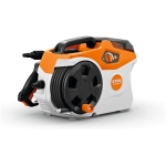 The pressure washer comes with a spray lance and a 3-in-1 nozzle, which allows you to choose between 3 different cleaning modes by simply twisting the nozzle to the chosen mode. The fan jet nozzle is designed for cleaning normal dirt off surfaces, the rotary nozzle is designed for removing stubborn dirt from robust surfaces and the cleaning agent nozzle combines water and a detergent, allowing you to spray the mixture directly onto a surface. The spray lance has an anti-twist quick-release coupling which prevents it from getting tangled during cleaning jobs and the pressure washer has an integrated 5-metre hose reel. The spray lance splits in two and can be stored on the pressure washer alongside the 3-in-1 nozzle, to make transporting and storing the pressure washer easier too.