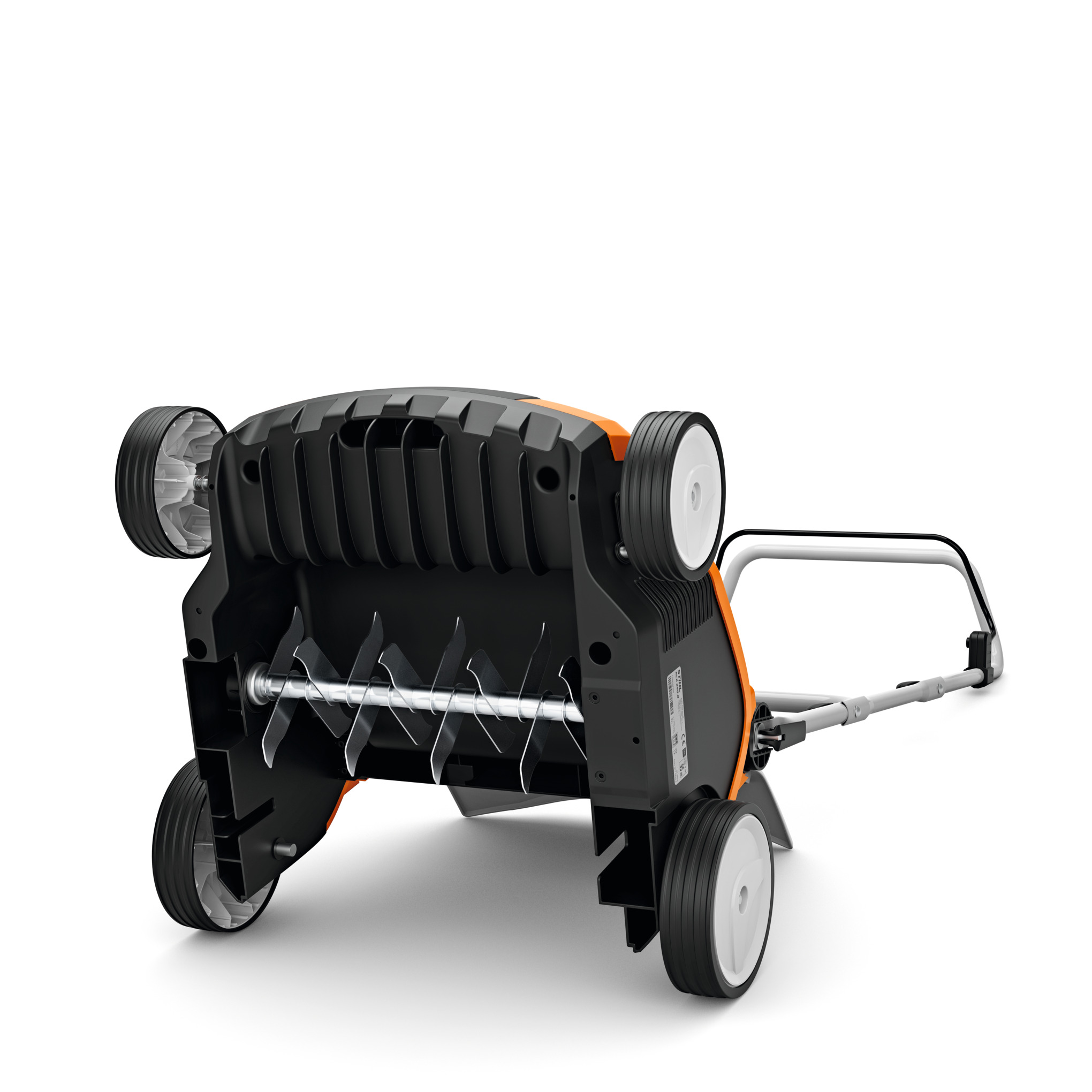 Thanks to its working width of 34 cm, the scarifier combines high manoeuvrability with efficiency – especially on lawns with lots of corners. It also gives you the option of either scraping the turf using the scarifying blades unit for better aeration or combing the dead grass and moss out of your lawn using the spring tine roller. Simply attach the tool you need in a few simple steps, adjust the working depth using the infinitely adjustable scale and start aerating or combing your lawn. Any accumulating plant remains are collected in the 50-litre grass catcher box.